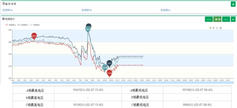 同時(shí)也可以查看分路實(shí)時(shí)用電數(shù)據(jù),提供負(fù)荷、示數(shù)、電壓、電流、功率因數(shù)等主要用電數(shù)據(jù)的統(tǒng)計(jì)和曲線圖形。
