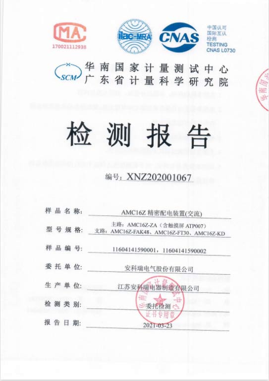 AMC100配電裝置具備CNAS檢測(cè)報(bào)告。