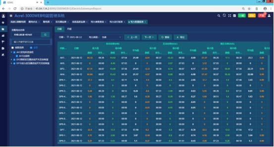 3)運行報表: 查詢各回路或設備指定時間的運行參數,報表中顯示電參量信息應包括:各相電流、三相電壓、總功率因數、總有功功率、總無功功率、正向有功電能等,報表格式有日報表、月報表、年報表等。