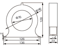 注:一次電流從P1面進,P2面(灌膠面)出;二次引線黃色為S2,紅色為S1,引線長150mm,引線截面積0.22m2