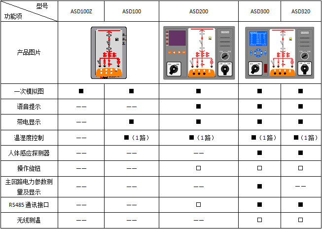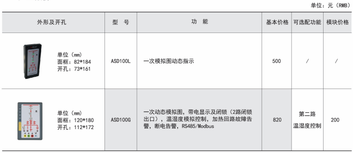 ASD系列開關(guān)柜綜合測控裝置具有一次回路模擬圖及開關(guān)狀態(tài)指示、高壓帶電顯示、自動溫濕度控制、人體感應(yīng)自動照明、語音提示、電參數(shù)測量及RS485通訊接口等功能,集操作、顯示于一體,直觀地體現(xiàn)柜內(nèi)元件的工作狀態(tài)及工作環(huán)境。