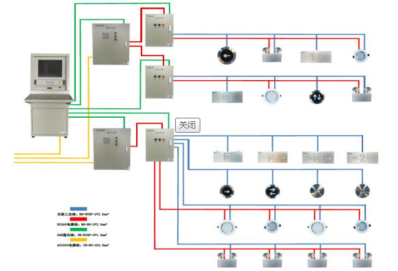 本系統(tǒng)采用消防二總線將具有通信功能的設備和燈具相互連接起來,當監(jiān)控系統(tǒng)中的設備及燈具發(fā)生短路、斷路等故障時,控制器能發(fā)出故障報警信號,指示故障報警地點并保存故障報警信息。