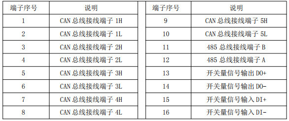 按照系統(tǒng)施工規(guī)范安裝控制器和敷設通訊線纜,將通訊線纜接入控制器的通訊總線接線端子。控制器的接線端子排裝于設備的內(nèi)部,端子排各端子的定義如表2所示。