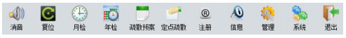 工具欄圖標如圖5所示,消音:用于關閉報警提示聲音;復位:將處于非正常狀態(tài)下的監(jiān)控系統(tǒng)復位至正常