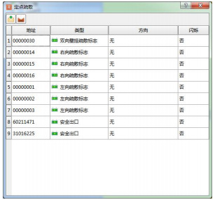 定點疏散功能允許有管理員權限的用戶在緊急情況下手動啟動報警點,根據(jù)實際火警信息提供疏散預案以外的疏散路徑。在工具欄中點擊“定點疏散”,如圖11所示,可對當前圖層設備點進行手動點亮。在“方向”一欄雙擊,可選擇指示燈點亮方向;在“閃爍”一欄雙擊,可選擇燈具是否閃亮,默認為長亮。允許同時對多個設備設置點亮方向和閃亮模式。