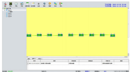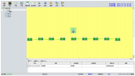 該界面簡潔、美觀,操作方便,能夠實時顯示疏散設備運行狀態(tài),循環(huán)監(jiān)控各疏散平面圖。報警點報火警時,迅速繪制疏散路徑,并發(fā)送啟動信號給現(xiàn)場設備,指導現(xiàn)場人員疏散。