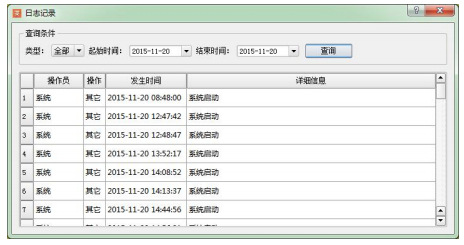 日志信息如圖13所示,可根據(jù)日志類型、起始時間、結束時間查詢該時間段內(nèi)類型的系統(tǒng)日志。其中,日志類型可選擇啟動、故障或者其他。日志內(nèi)容包括操作設備名稱、操作類型、記錄時間以及詳細的事件說明,幫助了解系統(tǒng)運行情況。