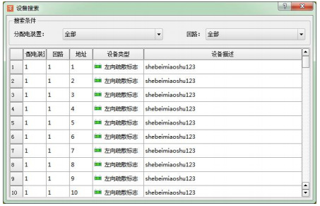 工具欄中點擊“搜索設備”,如圖14所示。在分配電裝置和回路的下拉菜單欄中選擇所需的裝置和回路。雙擊某條設備信息,可直接在疏散平面圖中定位到該設備。