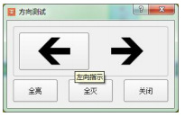 方向測試窗口如圖21所示,是為了檢測指示燈具安裝方向的正確性和一致性,即指示燈具安裝完成后,需檢查指示燈具安裝的方向與定義的方向是否一致。直接單擊某個方向,該方向的箭頭將變?yōu)榫G色,同時該方向的指示燈應全部點亮。