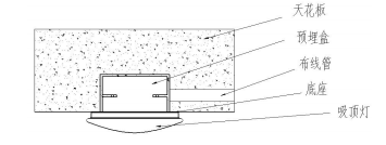 c.吸頂式燈具安裝:先將標準型 86 預埋盒安裝好;再固定安裝支架,安裝支架固定位置與預埋盒中心位置偏移 43mm。連接好總線及電源線;將安裝支架卡入燈具內,并擰上螺釘,即完成安裝.