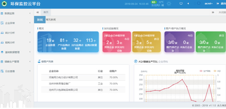通過關聯分析、超限分析、啟停時間分析,及時發現環保治理設備未開啟、異常關閉及減速、空轉、降頻等異常情況,同時通過數據分析還可以實時監控限產和停產整治企業運行狀態,如圖所示: