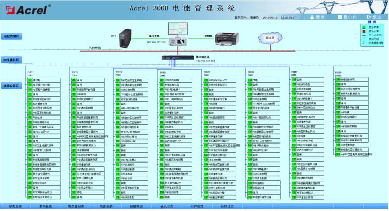 Acrel-3000電能管理系統通常采用分層分布式結構進行設計,即現場設備層、網絡通訊層和站控管理層: