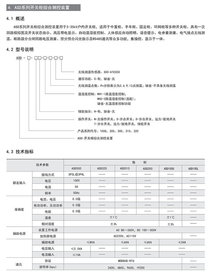 ASD系列開(kāi)關(guān)柜綜合測(cè)控裝置